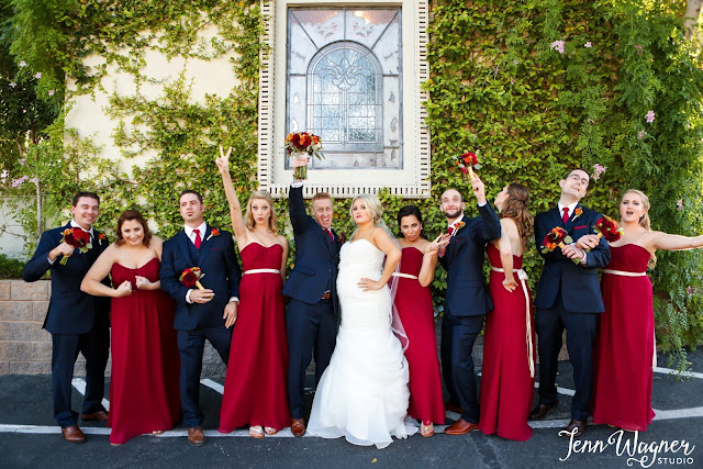 "Fall is both our favorite season, and having both grown up in places with traditionally beautiful fall foliage, we wanted to bring those colors to life at our AZ wedding! Both of us wanted a really comfortable feel from our venue and The Wright House was a perfect fit for that. It's a bit smaller, and the place is decorated all on it's own so we wanted to add even more warm and comfort by bringing in those deep fall colors. We aren't necessarily the most traditional people, so instead of standard black on the guys, we opted for really rich navy suits to accent the deep reds and oranges." -Kim